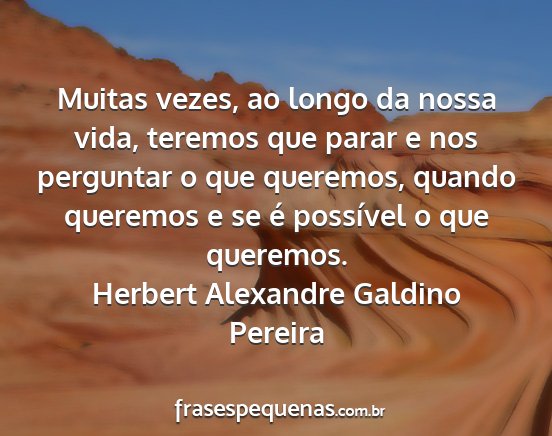 Muitas vezes, ao longo da nossa vida, teremos que parar e nos perguntar o que queremos, quando queremos e se é possível o que queremos.Herbert Alexandre Galdino Pereira