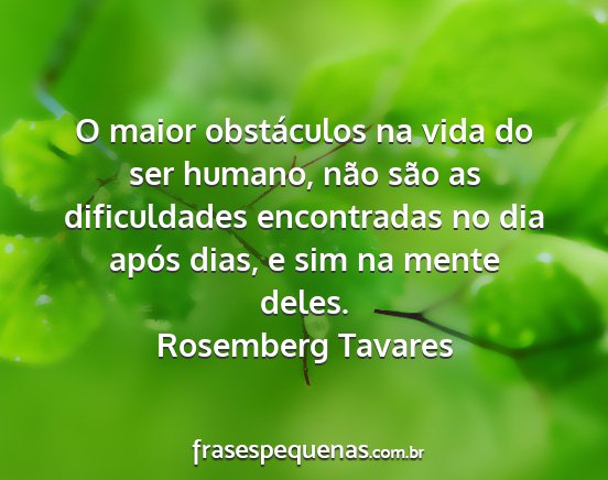 O maior obstáculos na vida do ser humano, não são as dificuldades encontradas no dia após dias, e sim na mente deles.Rosemberg Tavares