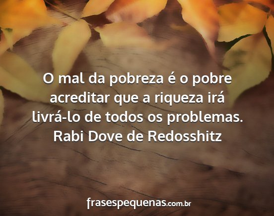 O mal da pobreza é o pobre acreditar que a riqueza irá livrá-lo de todos os problemas.Rabi Dove de Redosshitz