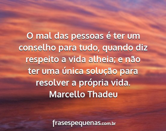O mal das pessoas é ter um conselho para tudo, quando diz respeito a vida alheia; e não ter uma única solução para resolver a própria vida.Marcello Thadeu