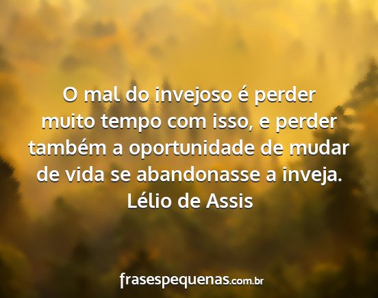 O mal do invejoso é perder muito tempo com isso, e perder também a oportunidade de mudar de vida se abandonasse a inveja.Lélio de Assis