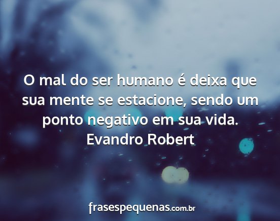 O mal do ser humano é deixa que sua mente se estacione, sendo um ponto negativo em sua vida.Evandro Robert