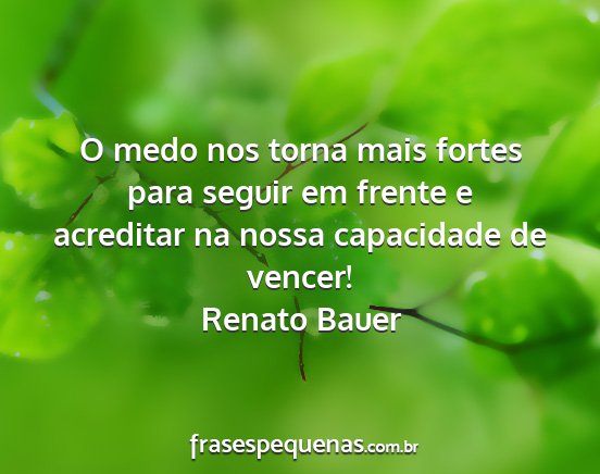 O medo nos torna mais fortes para seguir em frente e acreditar na nossa capacidade de vencer!Renato Bauer
