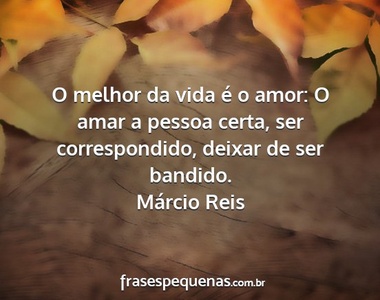 O melhor da vida é o amor: O amar a pessoa certa, ser correspondido, deixar de ser bandido.Márcio Reis