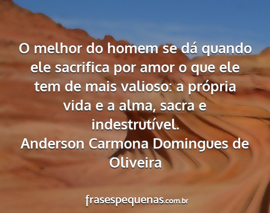 O melhor do homem se dá quando ele sacrifica por amor o que ele tem de mais valioso: a própria vida e a alma, sacra e indestrutível.Anderson Carmona Domingues de Oliveira