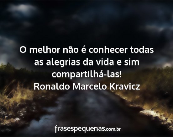 O melhor não é conhecer todas as alegrias da vida e sim compartilhá-las!