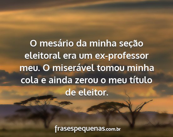O mesário da minha seção eleitoral era um ex-professor meu. O miserável tomou minha cola e ainda zerou o meu título de eleitor.