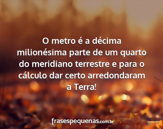 O metro é a décima milionésima parte de um quarto do meridiano terrestre e para o cálculo dar certo arredondaram a Terra!