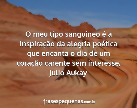 O meu tipo sanguíneo é a inspiração da alegria poética que encanta o dia de um coração carente sem interesse;Julio Aukay