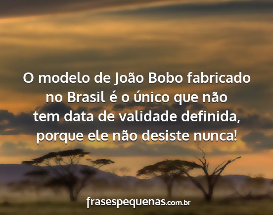 O modelo de João Bobo fabricado no Brasil é o único que não tem data de validade definida, porque ele não desiste nunca!