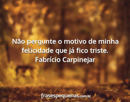 Não pergunte o motivo de minha felicidade que já fico triste.