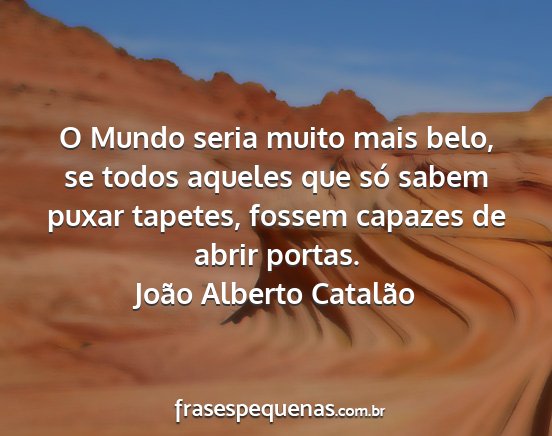 O Mundo seria muito mais belo, se todos aqueles que só sabem puxar tapetes, fossem capazes de abrir portas.João Alberto Catalão