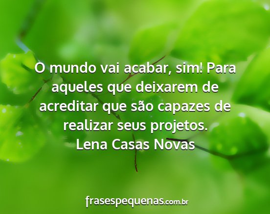 O mundo vai acabar, sim! Para aqueles que deixarem de acreditar que são capazes de realizar seus projetos.Lena Casas Novas