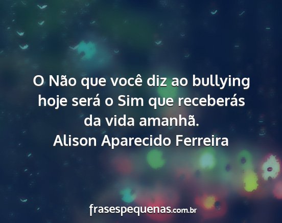 O Não que você diz ao bullying hoje será o Sim que receberás da vida amanhã.Alison Aparecido Ferreira