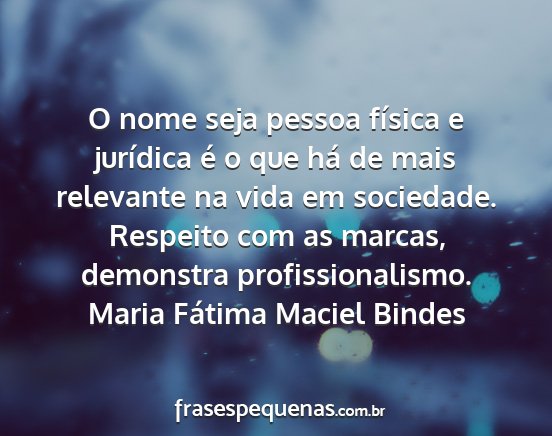 O nome seja pessoa física e jurídica é o que há de mais relevante na vida em sociedade. Respeito com as marcas, demonstra profissionalismo.Maria Fátima Maciel Bindes
