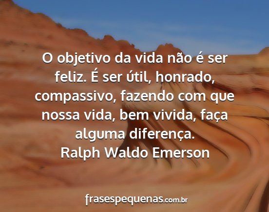 O objetivo da vida não é ser feliz. É ser útil, honrado, compassivo, fazendo com que nossa vida, bem vivida, faça alguma diferença.Ralph Waldo Emerson