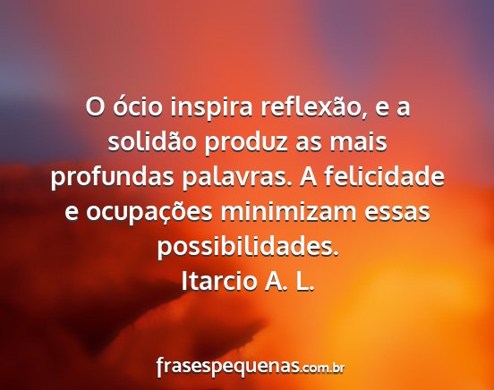 O ócio inspira reflexão, e a solidão produz as mais profundas palavras. A felicidade e ocupações minimizam essas possibilidades.Itarcio A. L.