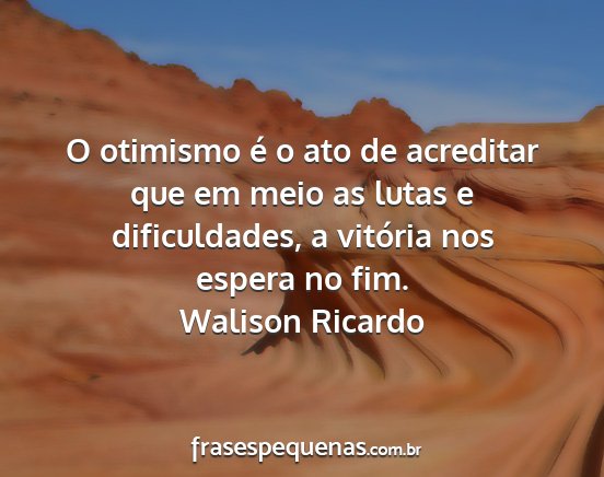 O otimismo é o ato de acreditar que em meio as lutas e dificuldades, a vitória nos espera no fim.Walison Ricardo