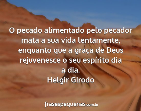 O pecado alimentado pelo pecador mata a sua vida lentamente, enquanto que a graça de Deus rejuvenesce o seu espírito dia a dia.Helgir Girodo