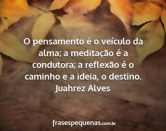 O pensamento é o veículo da alma; a meditação é a condutora; a reflexão é o caminho e a ideia, o destino.Juahrez Alves