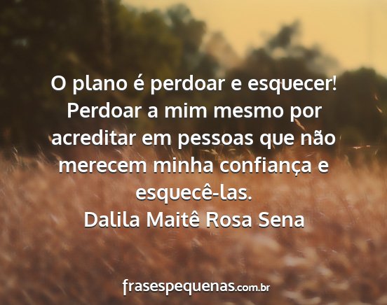 O plano é perdoar e esquecer! Perdoar a mim mesmo por acreditar em pessoas que não merecem minha confiança e esquecê-las.Dalila Maitê Rosa Sena