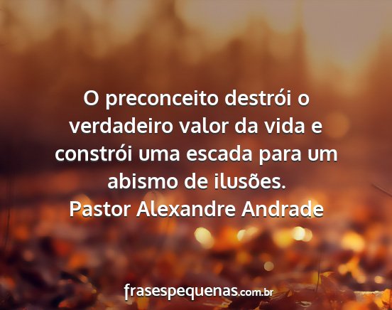 O preconceito destrói o verdadeiro valor da vida e constrói uma escada para um abismo de ilusões.Pastor Alexandre Andrade
