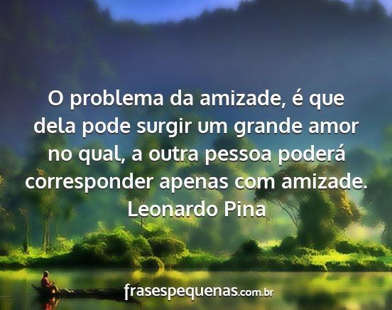 O problema da amizade, é que dela pode surgir um grande amor no qual, a outra pessoa poderá corresponder apenas com amizade.Leonardo Pina