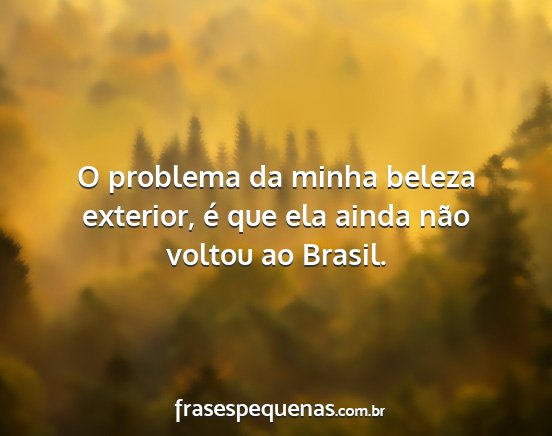 O problema da minha beleza exterior, é que ela ainda não voltou ao Brasil.