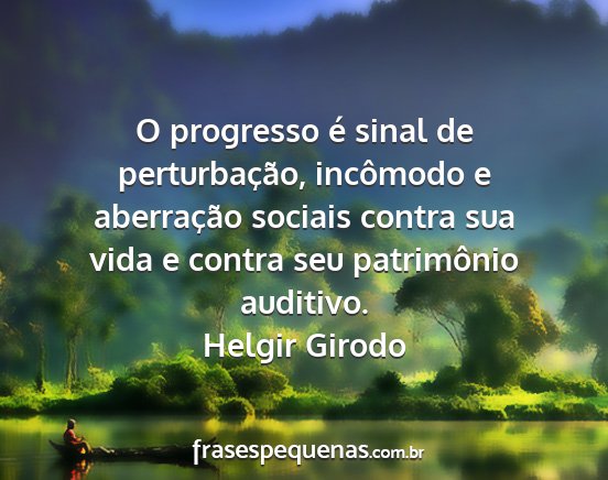 O progresso é sinal de perturbação, incômodo e aberração sociais contra sua vida e contra seu patrimônio auditivo.Helgir Girodo
