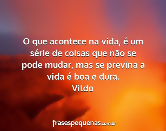O que acontece na vida, é um série de coisas que não se pode mudar, mas se previna a vida é boa e dura.Vildo