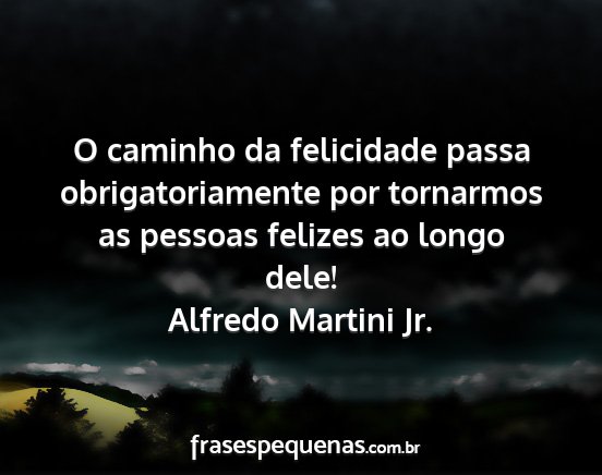 O caminho da felicidade passa obrigatoriamente por tornarmos as pessoas felizes ao longo dele!Alfredo Martini Jr.