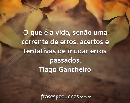 O que é a vida, senão uma corrente de erros, acertos e tentativas de mudar erros passados.Tiago Gancheiro