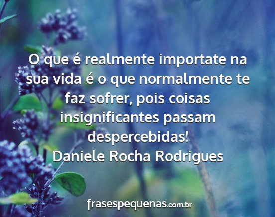 O que é realmente importate na sua vida é o que normalmente te faz sofrer, pois coisas insignificantes passam despercebidas!Daniele Rocha Rodrigues