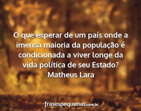 O que esperar de um país onde a imensa maioria da população é condicionada a viver longe da vida política de seu Estado?Matheus Lara