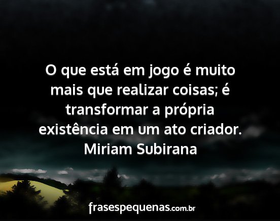 O que está em jogo é muito mais que realizar coisas; é transformar a própria existência em um ato criador.Miriam Subirana
