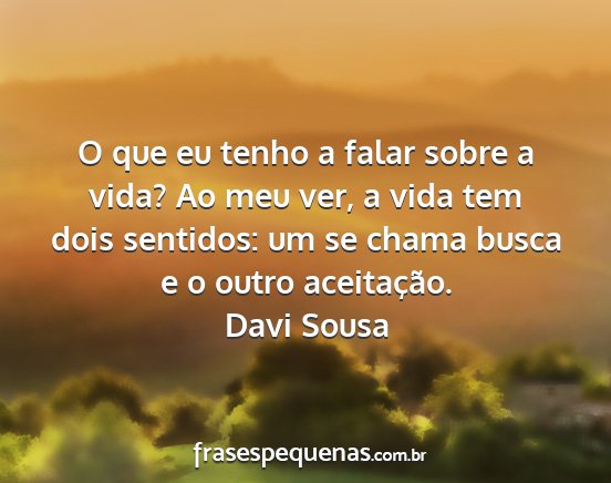 O que eu tenho a falar sobre a vida? Ao meu ver, a vida tem dois sentidos: um se chama busca e o outro aceitação.Davi Sousa