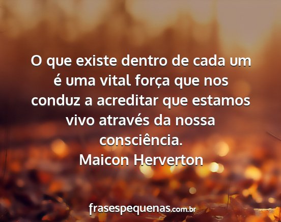 O que existe dentro de cada um é uma vital força que nos conduz a acreditar que estamos vivo através da nossa consciência.Maicon Herverton