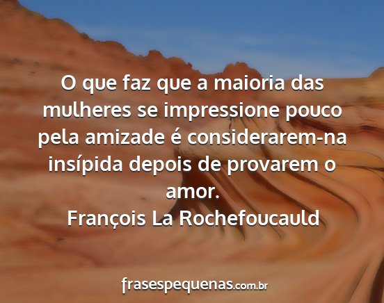 O que faz que a maioria das mulheres se impressione pouco pela amizade é considerarem-na insípida depois de provarem o amor.François La Rochefoucauld