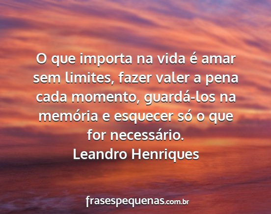 O que importa na vida é amar sem limites, fazer valer a pena cada momento, guardá-los na memória e esquecer só o que for necessário.Leandro Henriques