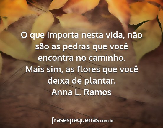 Mais sim, as flores que você deixa de plantar.Anna L. Ramos