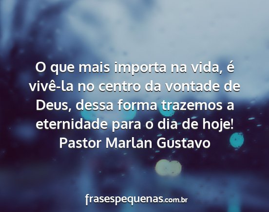 O que mais importa na vida, é vivê-la no centro da vontade de Deus, dessa forma trazemos a eternidade para o dia de hoje!Pastor Marlan Gustavo