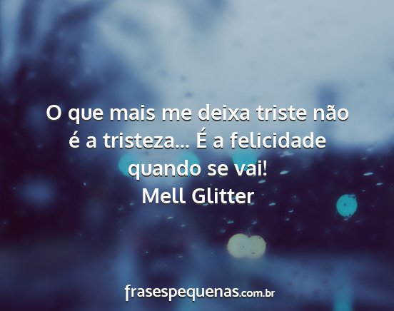 O que mais me deixa triste não é a tristeza... É a felicidade quando se vai!