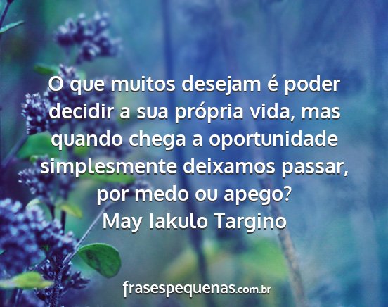 O que muitos desejam é poder decidir a sua própria vida, mas quando chega a oportunidade simplesmente deixamos passar, por medo ou apego?May Iakulo Targino