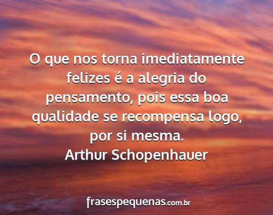O que nos torna imediatamente felizes é a alegria do pensamento, pois essa boa qualidade se recompensa logo, por si mesma.Arthur Schopenhauer