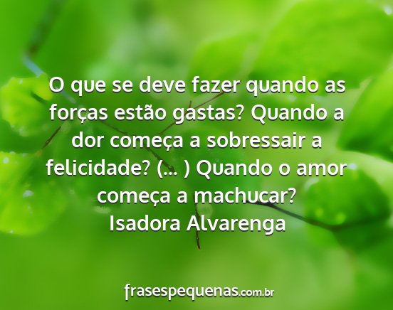 O que se deve fazer quando as forças estão gastas? Quando a dor começa a sobressair a felicidade? (... ) Quando o amor começa a machucar?Isadora Alvarenga