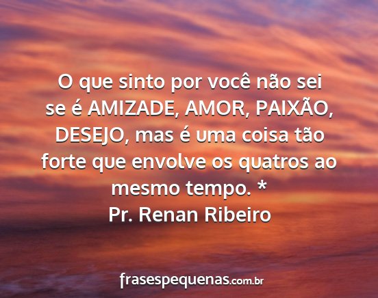 O que sinto por você não sei se é AMIZADE, AMOR, PAIXÃO, DESEJO, mas é uma coisa tão forte que envolve os quatros ao mesmo tempo. *Pr. Renan Ribeiro