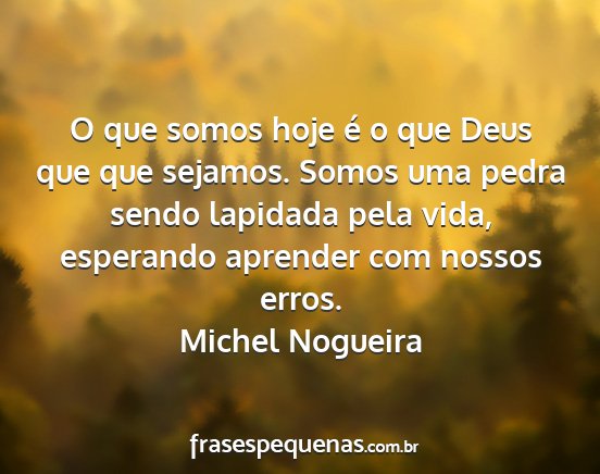 O que somos hoje é o que Deus que que sejamos. Somos uma pedra sendo lapidada pela vida, esperando aprender com nossos erros.Michel Nogueira