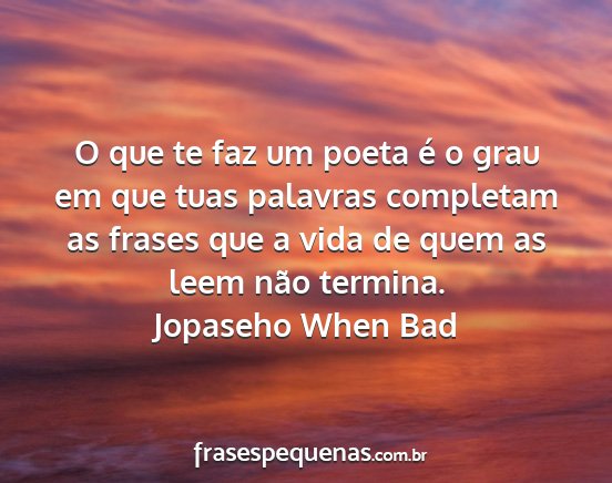 O que te faz um poeta é o grau em que tuas palavras completam as frases que a vida de quem as leem não termina.Jopaseho When Bad
