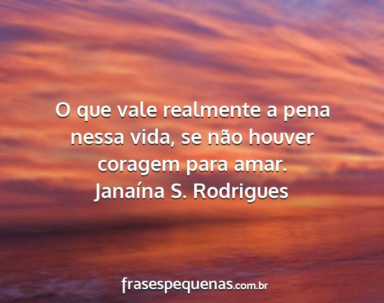 O que vale realmente a pena nessa vida, se não houver coragem para amar.