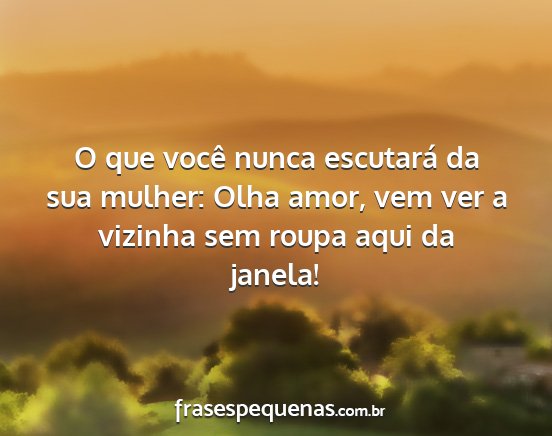 O que você nunca escutará da sua mulher: Olha amor, vem ver a vizinha sem roupa aqui da janela!